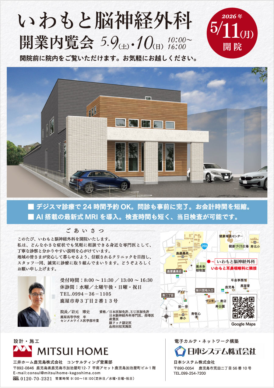いわもと脳神経外科が5/11(月)より開院いたします。