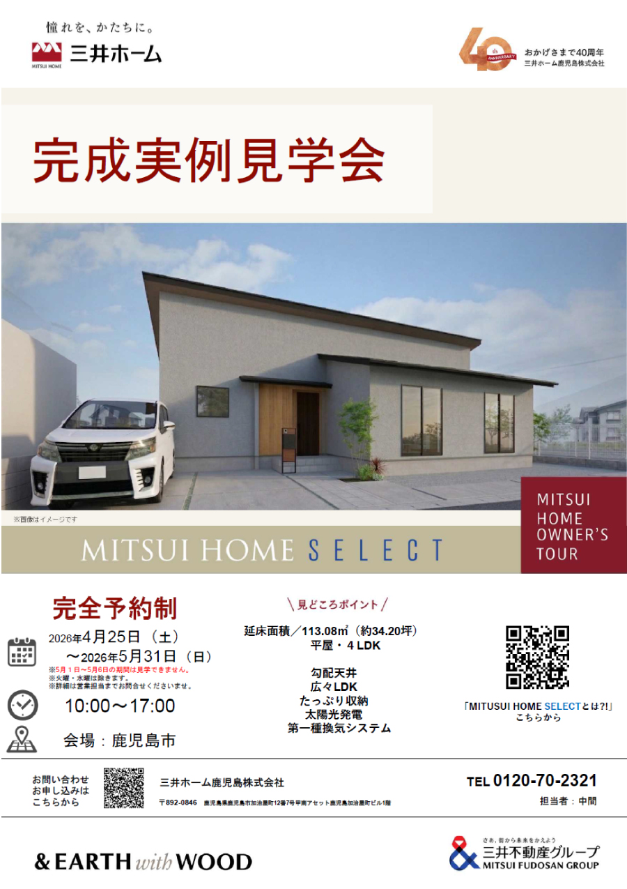 ②ご参加希望イベントより『鹿児島市(平屋) 完成実例見学会』を選択ください。